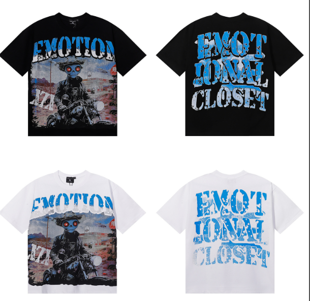 American-style mixed emotion “RACER” LS T-shirt with alien racer print, high-quality double yarn pure cotton casual short-sleeved T-shirt for men and women, size 23. Sizes: S, M, L, XL, XXL