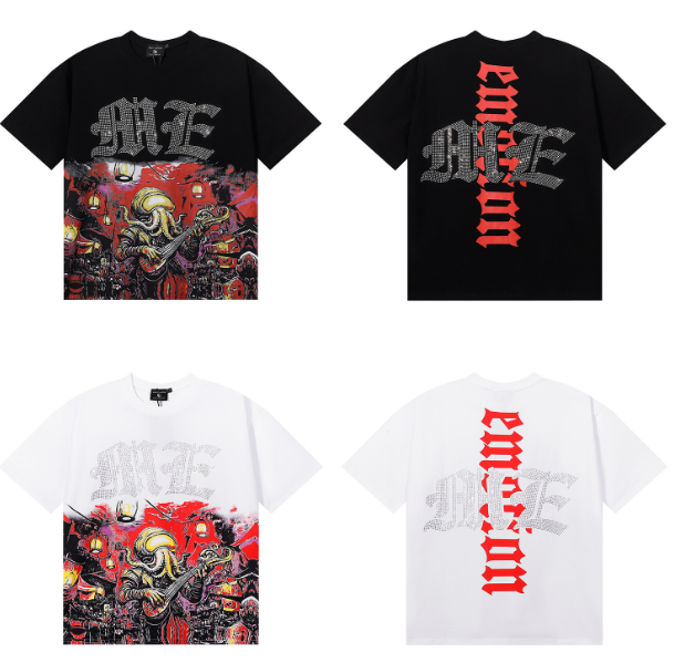 American-style mixed-emotion Octopus Rhinestone high-quality double-yarn pure cotton casual short-sleeved T-shirt for men and women. Sizes: S, M, L, XL, XXL