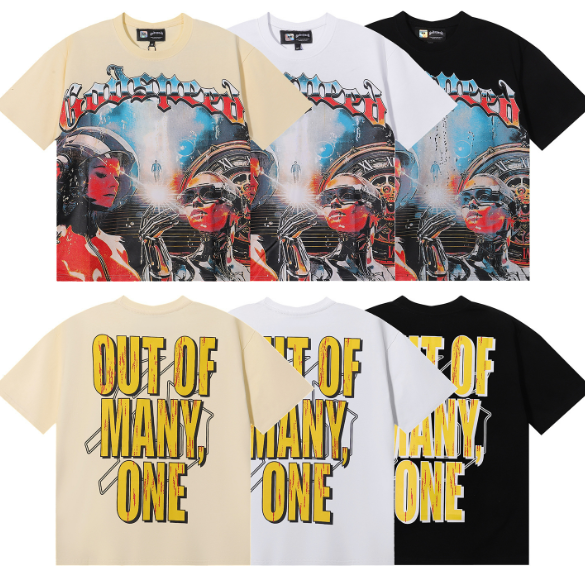 Camiseta informal de manga corta de algodón puro de doble hilo de alta calidad con estampado de robot astronauta Godspeed de estilo americano para hombres y mujeres