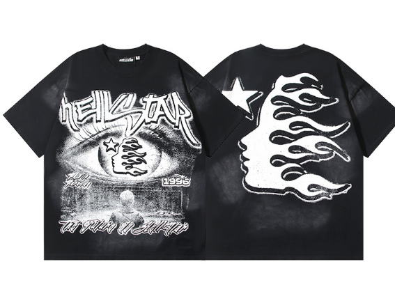 Hellstar Washed Retro Trendy Print Short-Sleeve T-Shirt
