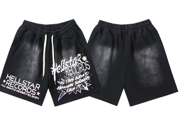 Hellstar Distressed Casual Shorts with Washed and Splattered Ink