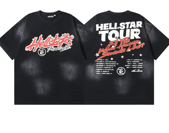 Hellstar Washed Retro Trendy Print Short-Sleeve T-Shirt