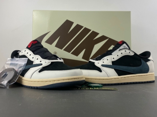 Travis Scott x Air Jordan 1 Low Top, Black/White/Dark Blue Reverse Swoosh Low Top, Sizes 36-47.5
