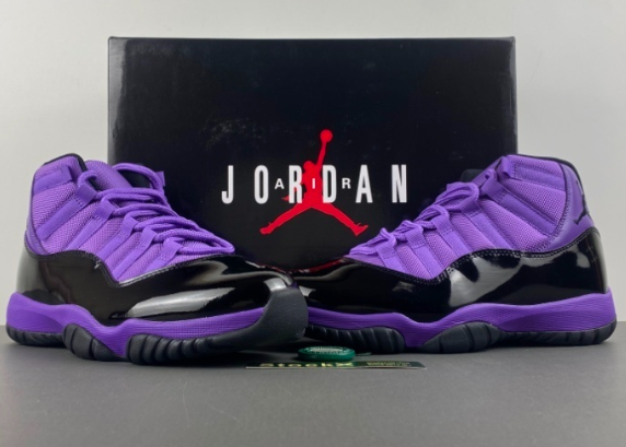 Air Jordan 11 Retro High-Top in Purple/Black, Genuine Leather, Sizes 36-48.54 (shipping price).