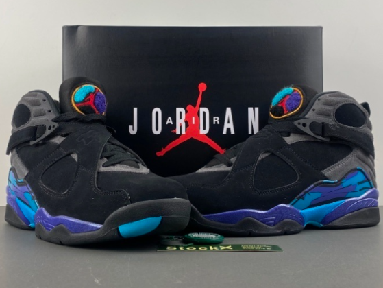 Air Jordan 8 “Aqua” Retro 2025, Black, Grey, Purple, Blue. Style Code: Original Version, G.36-48.5.