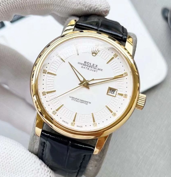 Rolex (actual photos) Business Series, all crafted from 316L stainless steel, exuding high-end elegance! The 316L stainless steel case features a perfectly sculpted polygonal curve! It’s equipped with imported sapphire crystal, an Italian waterproof leather strap, and an original pin buckle! Powered by an imported fully automatic mechanical movement.